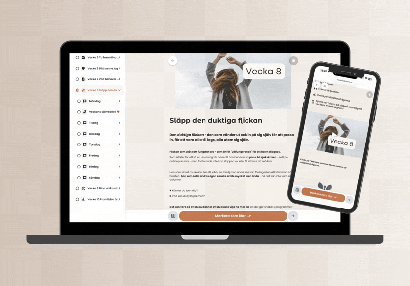 Många kvinnor som gått programmet har liksom jag provat terapi, KBT, och vårdens hjälp - men utan ett resultat som hjälpt långsiktigt. Det här programmet är något helt annat. Jag byggde det jag själv saknade. Inte ett till program med ADHD-tips och rutiner - utan en väg som fokuserar på dig, dina behov, dina drömmar, ditt liv och hur du ska orka mer än att bara hantera dig själv och ditt liv.