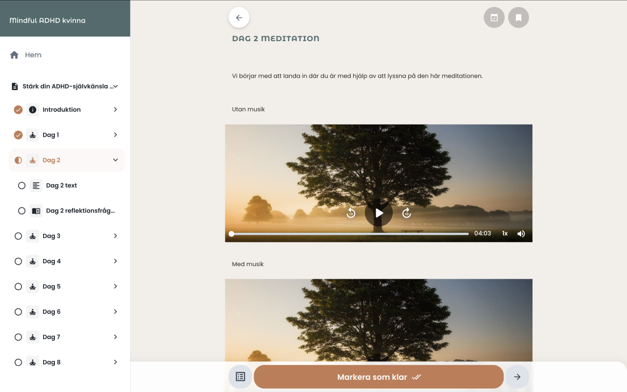 En kurs som du gör i din egen takt, när det passar dig och som ger dig verktygen att börja möta dig själv med mer förståelse, mindre självkritik och en starkare självkänsla - steg för steg, dag för dag.
