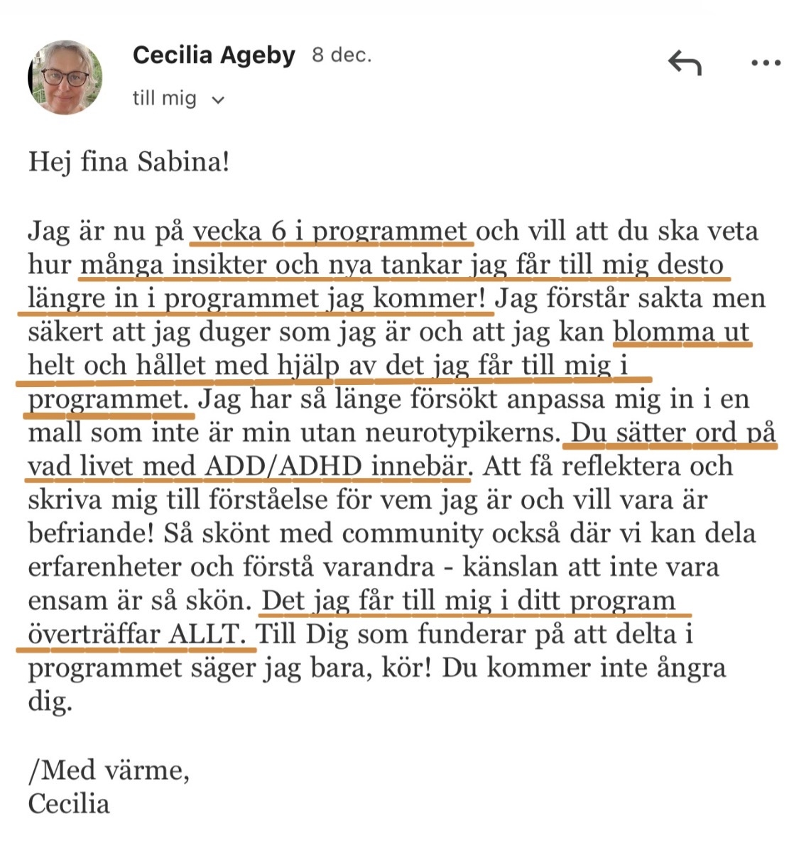 "Det här programmet har varit livsomvälvande för mig och gett mig så mycket mer än många långa år i terapi.